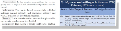 Each work has more or less the same structure composed of the following chapters:•Heading. The heading consists of two parts, namely the current name (above) and the original combination (ICZN 1999, see recommendation 51A for term; often also named basionym, a term not used in the ICZN 1999, but in botany), including authors and year. The original combination is mentioned in the heading because it never changes. By contrast, the current name is usually the combination most recently published.•List of synonyms. The list of synonyms contains all taxonomically and nomenclaturally important contributions, that is, the original description, all combinations, redescriptions, and other taxonomically important papers. Papers where solely molecular data are published are usually not included in the list; these studies can be found in the chapter phylogeny and classification (see below). Each entry consists of the following components: year of publication and name as written in the paper, including authors, year, and/or nomenclatural terms like, for example, comb. nov. (all these parts are in bold); the n-dash (–) separates the taxon from the bibliographic data of the work containing this name; author(s) of work; name of journal or (brief) title of book; volume of journal or book series; page number where description begins or where nomenclatural act is made (a page number with the letter K means a page where the taxon is mentioned in a key); figures and tables referring to taxon; in brackets, brief explanation of content, accession numbers of slides, problems, etc.). •The entry of the original description contains also the ZooBank registration number. Note that the registration in ZooBank (zoobank.org) is a prerequisite for the valid publication of a new taxon/nomenclatural act in online-only journals since 2012 (ICZN 2012, Article 8.5), that is, such works which do not contain the registration (or at least a hint that registration has occurred) in the work itself are not published in the sense of nomenclature and thus the taxa described therein are not valid. An example for such an invalid original description is Shao et al. (2014). The corrigendum, which represents now the original description, was published by Shao et al. (2017).•Brief characterisation. The brief characterisation is based on the original description (only when it contains relevant features) and other papers dealing with morphology (see list of synonyms). It is a summary of the main features and not an “improved diagnosis” or detailed description. The features are arranged as in my monographs. For details on morphology, see original description, redescriptions, and revisions mentioned in the list of synonyms.•Nomenclature. In the chapter nomenclature the species-group name is explained and nomenclatural problems are discussed.•Valid names. This chapter lists all names validly published including original author(s) and combining author(s) and years. The names are listed chronologically.•Remarks. In the remarks section, taxonomic topics and issues are discussed more or less detailed.•Morphology. This chapter is usually brief because containing only hints to the original description, redescriptions, and revisions. Since the page numbers are mentioned you can find the data rather easily in the various publications, which are sometimes rather voluminous. My monographs usually contain most or even all relevant figures published until that time. Later papers are mostly available as PDFs in the www and thus (almost) instantly accessible. The works published in the present series do not contain illustrations and micrographs; however, via the detailed hints in the work itself you can find the illustrations and micrographs very easily in the original publications or in revisions!•Cell division etc. Chapters on cell division, physiology, or other issues are optional, that is, only available when data on these topics have been published.•Classification and phylogeny. The classification and phylogeny section begins with a brief comment on the supposed phylogenetic position. When sequences are available the origin (direct submission or via a paper) is mentioned as indicated in NCBI data base. In addition, all papers using the sequence are listed. When more than one sequence is published, then the references are kept separate.•Further literature. In this chapter, papers are listed which cannot be assigned to other chapters.•Occurrence and ecology. The chapter occurrence and ecology provides a brief comment on the main habitats and the geographic distribution. Usually you will find a hint to the same chapter in the corresponding monograph (Berger 1999, 2006b, 2008, 2011) where most or even all records are considered in detail. In addition, “all” records not considered in the corresponding monograph are listed. In some cases the present chapter contains all records published so far, especially when the number of records in not very high or the presentation in the corresponding monograph not very detailed (Berger 1999). The records are arranged according to continents; within the continents, the countries are listed alphabetically.•References. The reference section contains all papers mentioned in the present study. Papers not dealing with the species treated are marked with an asterisk.•Systematic index. Each work contains a two-sided index (e.g., Cyrtohymena citrina; citrina, Cyrtohymena) to the scientific names.Works dealing with the type species (e.g., Berger 2018c) also contain a review of the genus, the key to the species, and a list of species which are misclassified in this genus or species indeterminata, nomina nuda, etc.1 Five parts of the Protozoenfauna (PF) have been published, before the series was ceased: (1) Matthes D. (1988): Suctoria (Sauginfusorien). – PF 7/1, XI-XIII, 1-226, 307-309; (2) Guhl W. & Haider G. (1988): Urceolaridae (Peritricha). – PF 7/1: 227-306, 309; (3) Page F.C. (1991):